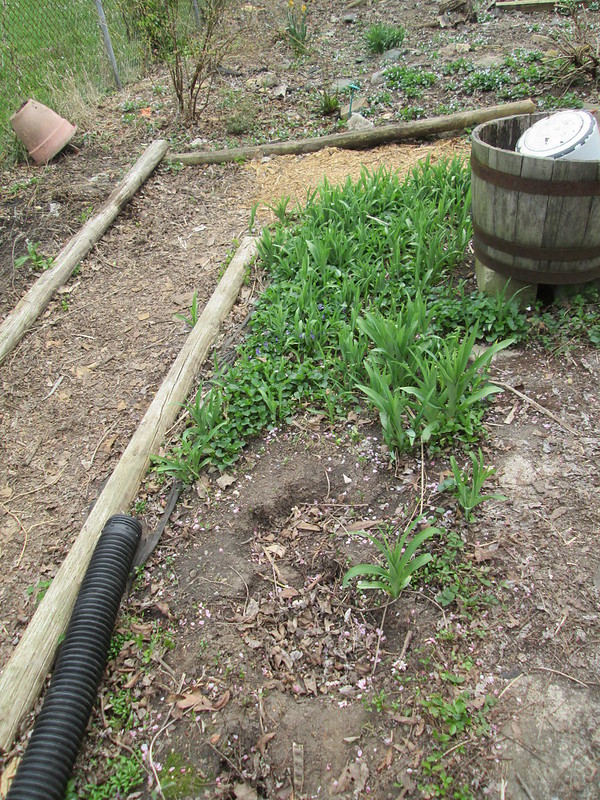 I dug out the Lenten roses here and moved them to the front and the plan was to move these day lilies to another spot toward the back to give me this newly sunny area to plant veggies in. My body, however, had a different opinion so this may have to be a fall/winter veggie bed or wait another year.