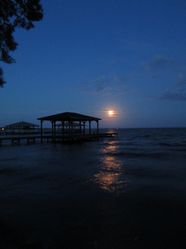 The full moon was beautiful the first two nights. The third night there was a tornado warning for a few minutes but most of the weather shifted to our northwest. Thank goodness, since there is no good place to take cover in the lake house.