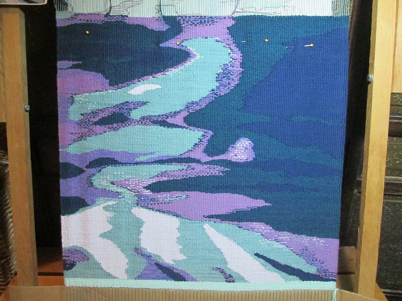 It’s slow going, mainly because my life and house is messy right now, but I only have about three inches left to weave on “98% Water.”