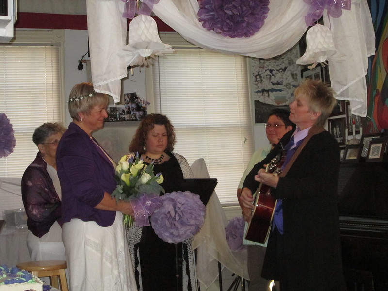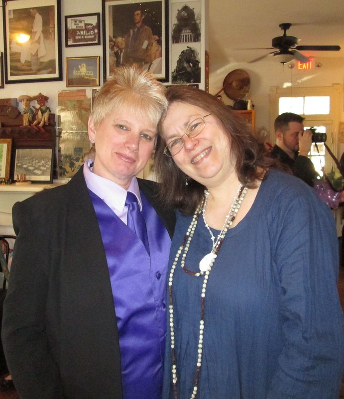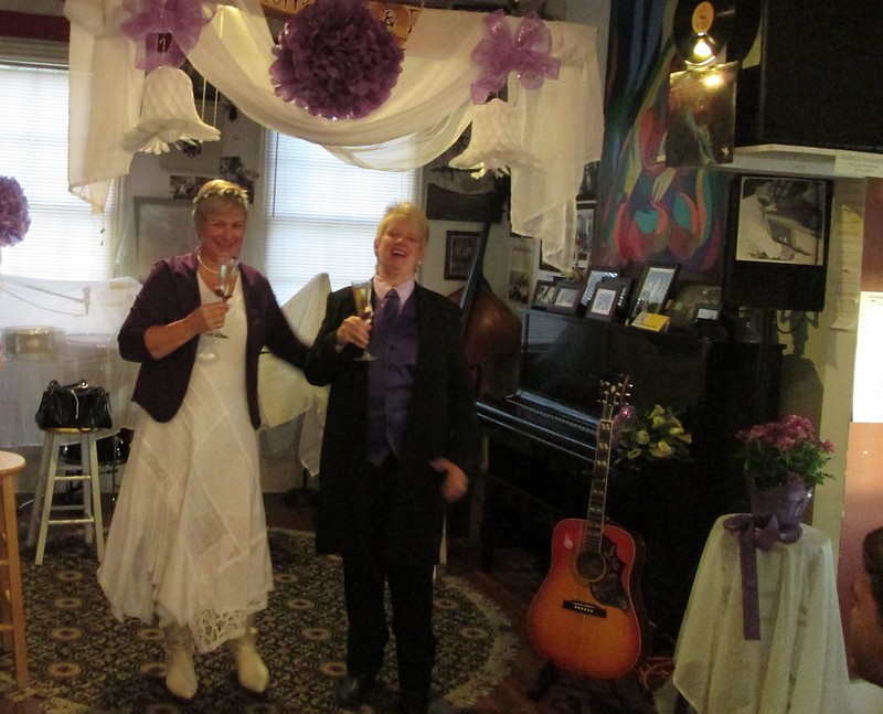 On Saturday Sandy and I attended a sweet wedding in a little coffeehouse on the riverfront in Wilmington, NC. My friend JoJo and I have been friends for longer than either of us can remember – probably since we were babies in the nursery at our church. Because same-sex marriage finally became legal in North Carolina a couple of months ago and we’re looking at an unfortunate political situation in DC come January, they hurried up their plans to get legally hitched. I’ve been an advocate for equal rights for a long time, so this wedding was extra special. This is one of the most loving couples I’ve ever known, and I got all sentimental and cried tears of happiness throughout the ceremony.