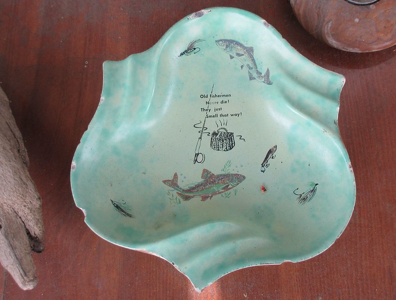 Daddy’s ashtray is now on my front porch. There always used to be White Owl cigars in it. My Aunt Lib made it for him. This is one of those treasured odd objects that I thought had been thrown away. It’s one of the things that will make the move west with me.