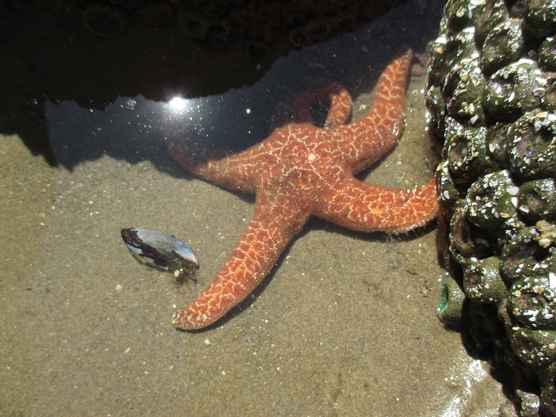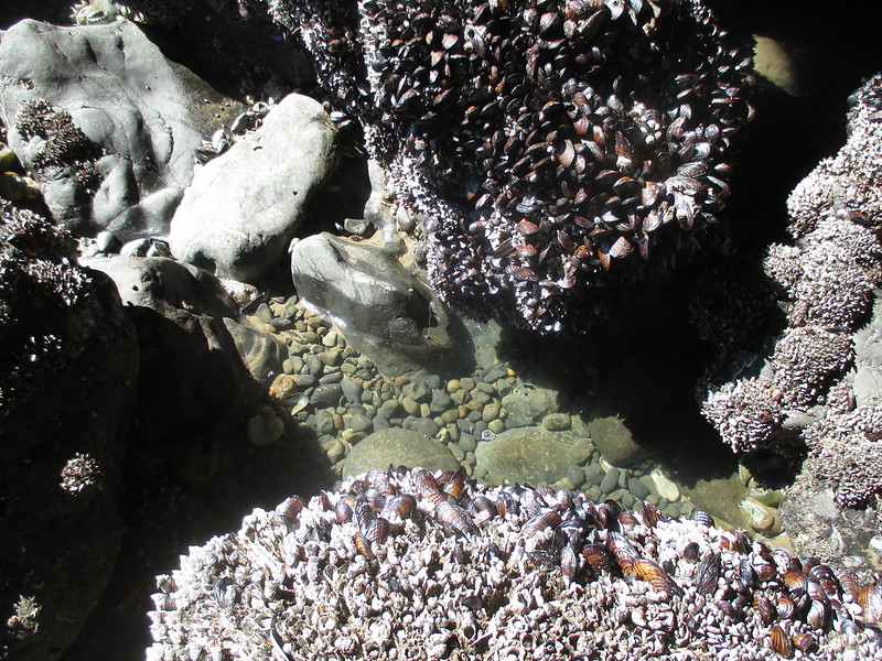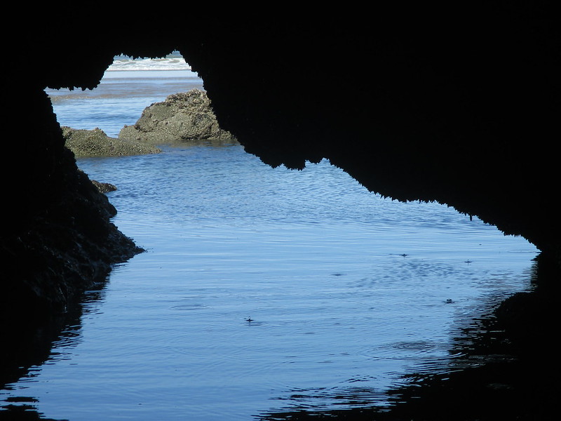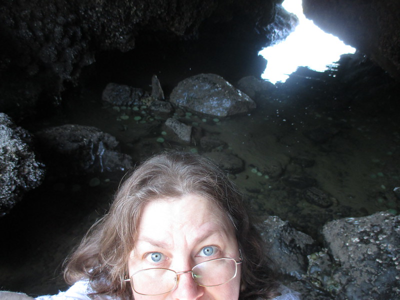 I wanted to explore this hole last year but didn’t have the courage. I tend to be clumsy and the rocks are covered with sharp mussels. When I saw a little boy come out of this “cave” I wandered in and found that the rocks were not slick but it was still a challenge to keep my balance. Anyway, I came out unscathed which is pretty good for me, and it was totally worth it. It is between Arcadia Beach State Park and Cannon Beach.