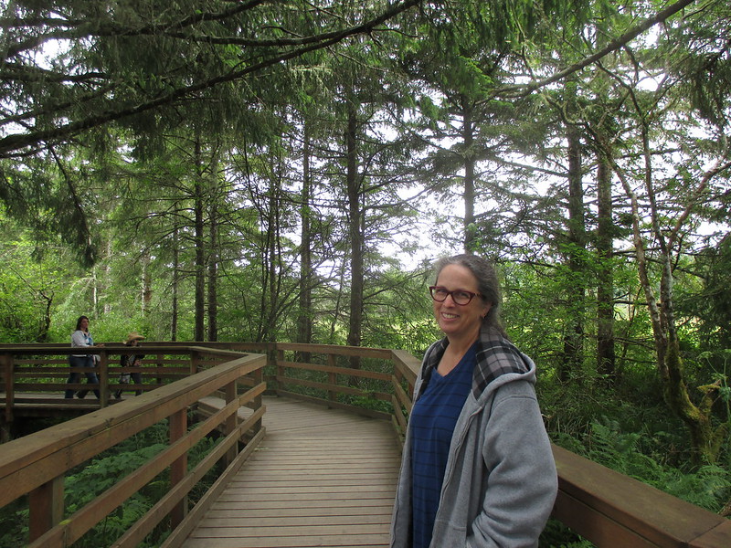 On Monday Pam ran errands so we hopped into our rented baby blue Beetle and headed north up the Pacific Coast Highway to Astoria. I like to visit any national parks nearby when I travel so we went to Fort Clatsop at Lewis and Clark National Park, and had a nice walk under the huge trees.