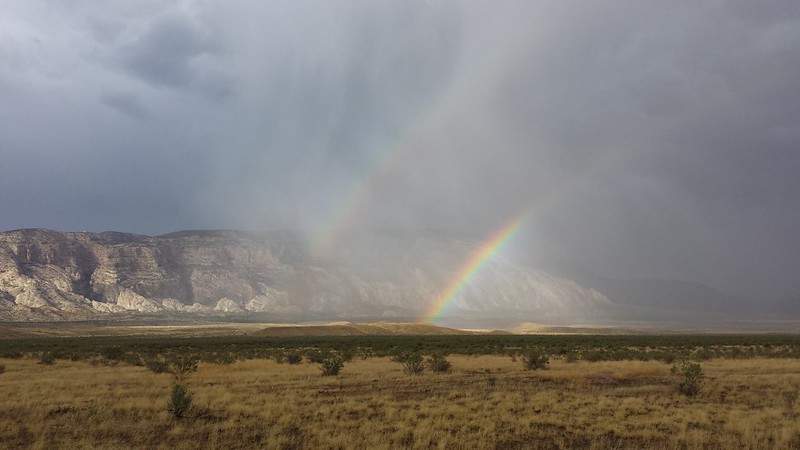 It had rained on and off all day, but as we approached the Utah line the clouds grew very dark and became as interesting as the surrounding landscape. Then we were rewarded for the rain.