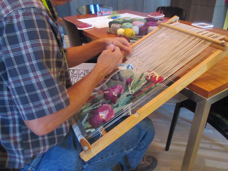 David Johnson was demonstrating soumak tapestry on a frame loom there. I was really happy to meet him.