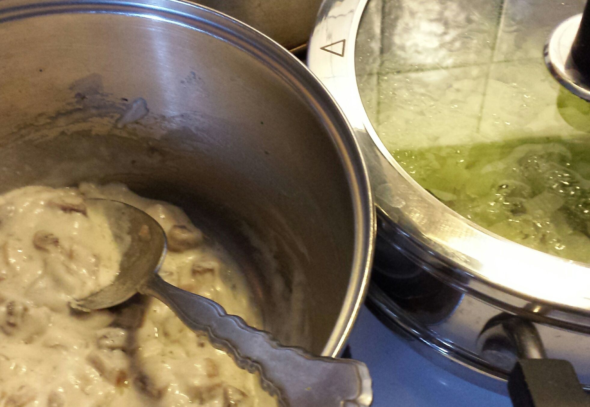 We Southern cooks love our casseroles with cream of this-or-that soup, but since I moved to eating organically and locally as much as possible several years ago, I’ve adapted some of my favorite casseroles to using a cream sauce with whatever. I make faux condensed cream of mushroom soup by making a thick white sauce with fresh mushrooms cooked in the butter. That is what went into the broccoli casserole this afternoon instead of canned soup. Yes, it looks gross but it is SO much better.