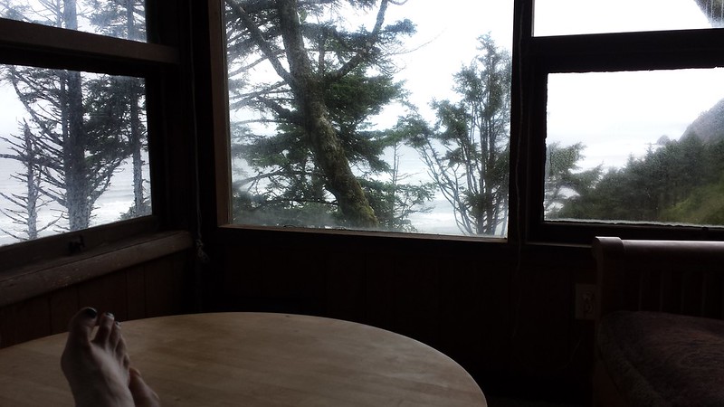 The house is nestled in a temperate rainforest on a sea cliff. I wished that I could have one rainy day all day to spend there. What a restful place.