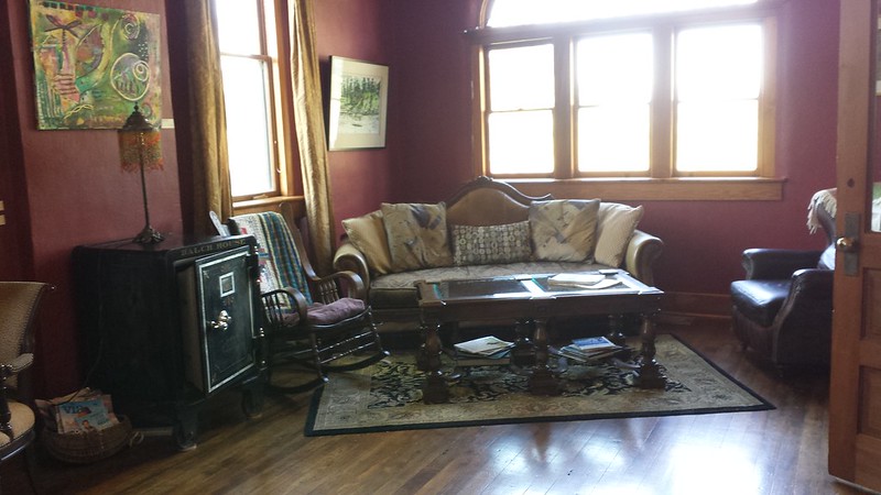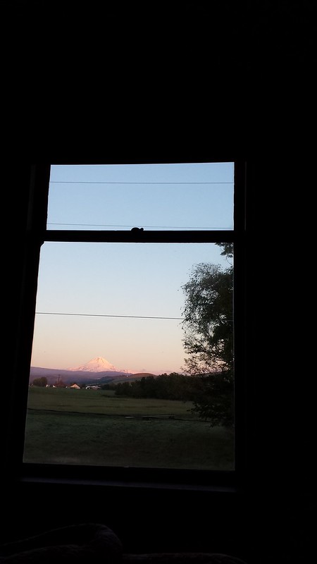 When we got to the tiny town of Dufur, we reached our destination for the night. We were the only guests on a Tuesday night at the Balch Hotel, a lovingly restored hotel built in 1907. We had cheeseburgers at the saloon across the road, then settled in to the former “Ladies Sitting Room,” our bedroom with a view of Mount Hood. The next morning, we had a wonderful breakfast in the hotel which was included. This may have been the best deal on a lovely hotel I’ve ever gotten. The rooms and the grounds were gorgeous.