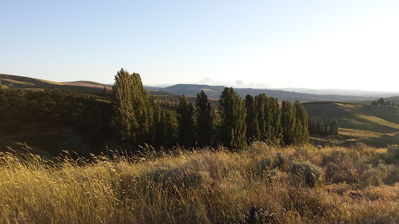 We turned south at the Dalles, and ironically, just after the sign stating that we had left the national scenic area, there was this view of Mount Hood. And I began to fall in love with central Oregon. Maybe it’s because that I grew up in the swamps that I love hilly dry country with lots of sky.