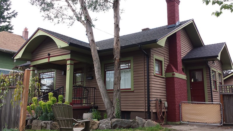 On Tuesday, the weather forecast was excellent so we decided to drive up the Columbia Gorge, spend the night on the east side of the Cascades, then drive several hours farther southeast to the John Day Fossil Beds National Monument. We stopped on Alberta St. in Portland on the way to have a piece of pie and explore a few stores there. I took a photo of this house because I think that the colors might be nice for our Craftsmen house when we paint the exterior.
