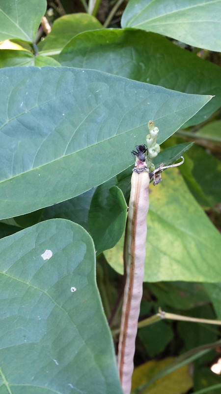 My field pea crop is winding down. I prefer to eat them freshly shelled (not dried like this photo) with “snaps” – the immature pods snapped like green beans. This year they have been besieged by big black ants who hang out at the top of each pea and will run up your arm and bite you. You have to be very careful when you pick them. I don’t know what I’ll do about this next year. At least they are not fire ants.