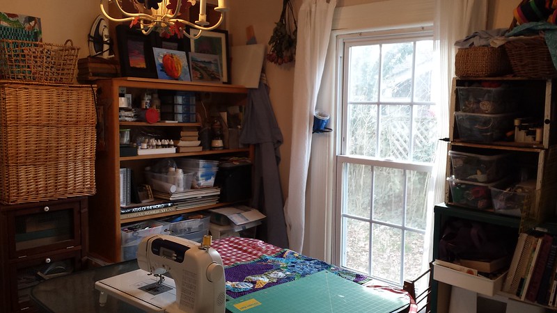 We both are joining a few other fiber artists from Greensboro in an exhibition called “The Fabric of Our Lives” at the Congregational United Church of Christ in Greensboro, NC. The show will be up from mid-January through Mid-March. I won’t have anything new to show, but I’m dusting off a few framed tapestries and fabric works and mounting the “Flag of Me” for the exhibition. More details later.