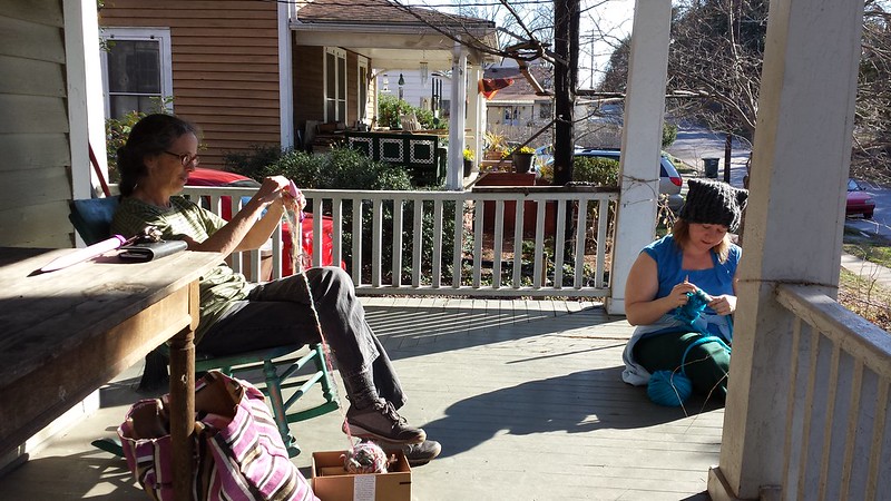 The weather was beautiful week before last and I moved the Shannock loom out to the front porch for one day. Looking forward to weaving on the porch more often now that I have it screened with a ceiling fan and electricity. Susanne, Marianne, and I enjoyed the porch at the studio house too.