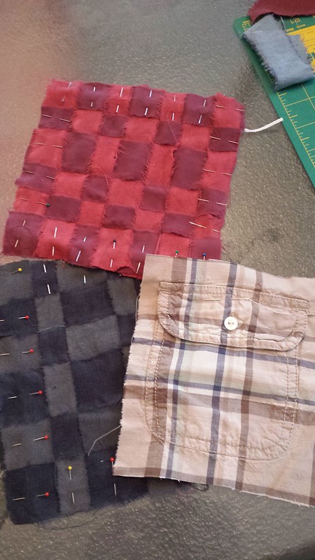 Craving studio time. Weekends are the only time I’ve made it over here so far this year. Right now I am weaving together more subtle checkerboard squares to mount shirt pockets on, for the blanket. Also I’m sewing random bits together to make new cloth, with no real plan on how to use them. Maybe they will go on the back of the blanket. It is curious that my passion has moved to sewing, considering the mental blocks I had to overcome. I wish very much that I could sew by hand, but at some point I accepted that my tendinitis is just not going to allow it except in very small amounts.