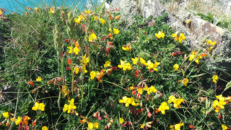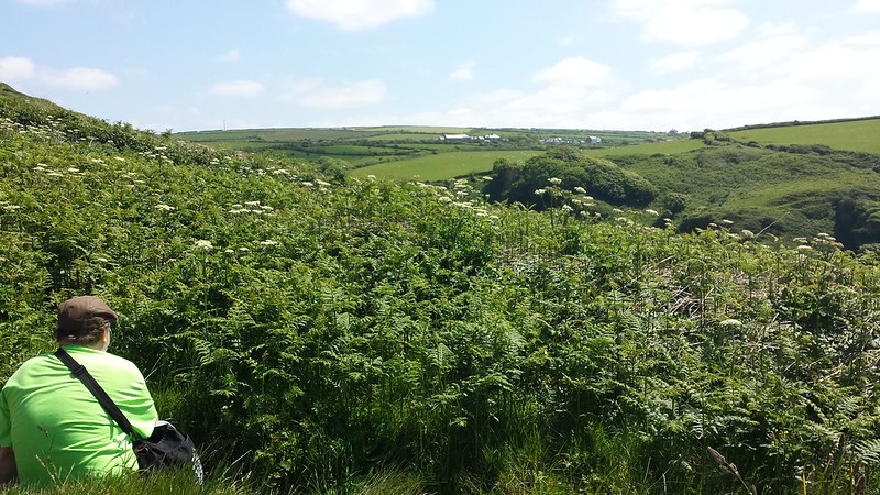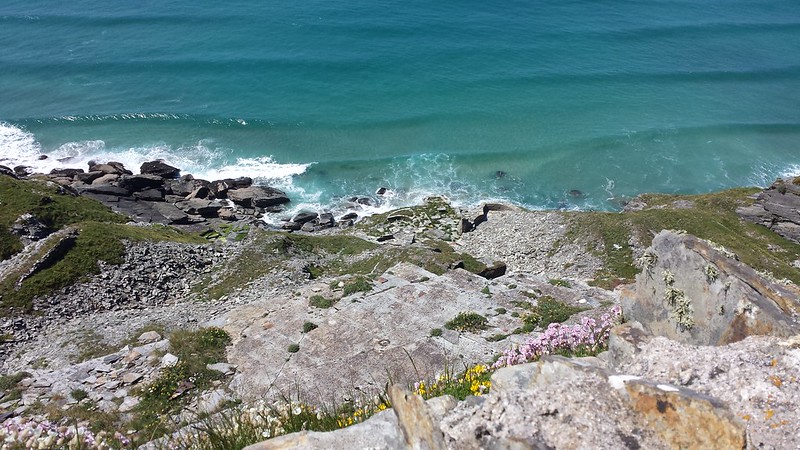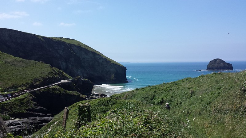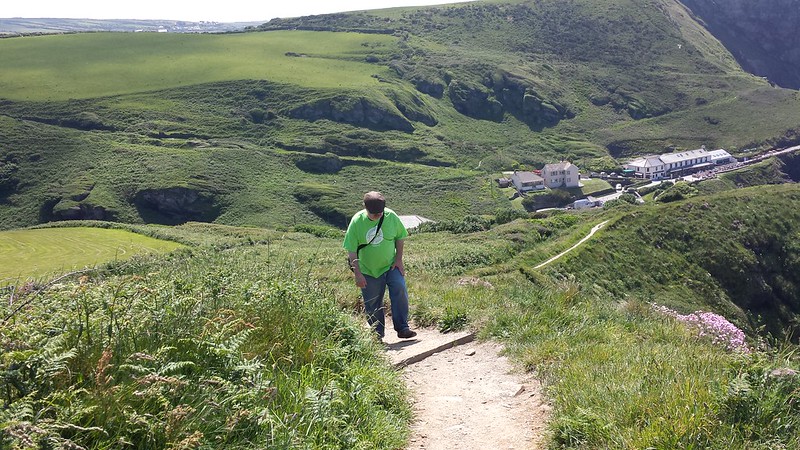 The trail was very steep near the beach, and that was tough coming back, but we did it and we were glad of it. We took a break, then went back, turned right, and hiked the Coast Path to Tintagel Castle.