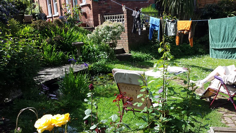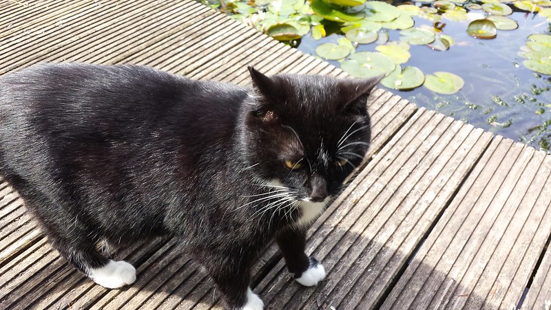 Our hosts, upon seeing how exhausted we were, suggested that we take a down day, sleep, do a load of laundry, and hang out in their beautiful back yard. Their children were there and they went out with them that morning and early afternoon. When they came back, they invited us to eat a mid-afternoon dinner with them and their family. It was a lovely restful day, and as you can guess from these photos, it was just my kind of place, made complete with Esme, the grumpy cat.