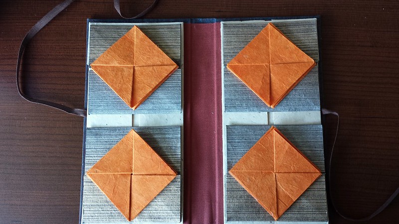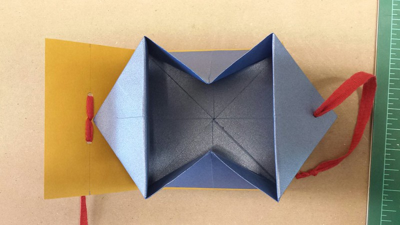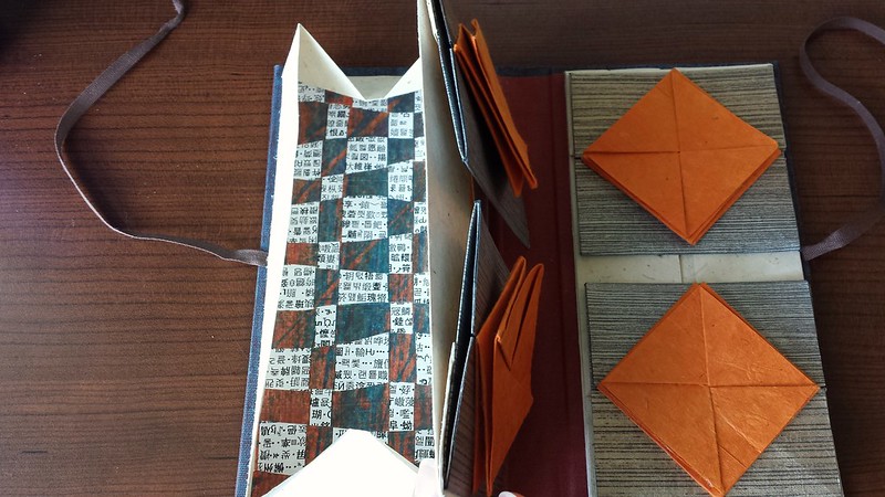 On the second day, we all separated to go to different classes. Judy went to a different class every day. Susanne chose a four-day long class in twined binding taught by Roberta Lavadour, and she was in heaven the whole time. I chose a two-day class by Jennie Hinchcliff called “Collecting & Keeping: Chinese Thread Books.” I was hesitant about choosing this one since it involved some origami, but I LOVED IT. LOVED IT. LOVED IT. It’s too hard to show you how much fun this book is without taking a video, and I’ll put one up in a few days when I have some help.