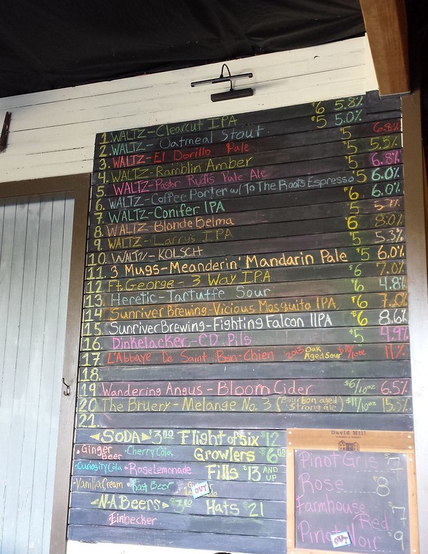 Susanne talked to a street fiddler who invited us to a bluegrass jam that evening just a couple of blocks away at Waltz Brewing, a very small brewpub in a renovated garage. The garage door was up, there was seating on the sidewalk, and the weather was perfect. We munched on our goodies from the market, petted the local dogs, drank ginger ale and porter, and enjoyed the music. We enjoyed it so much that we skipped the conference lecture again the next night and went back to hear a blues guy play guitar and sing to a karoake machine. I bought a growler of Coffee Porter with To the Roots Espresso (from a local coffee roaster) to keep back in the dorm room fridge.