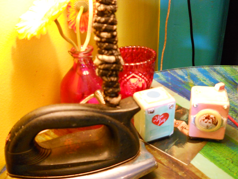 I took a photo of the ceiling at Maggie’s Buns this time because if I’m ever able to look up long enough to do it (neck issues) I’d like to paint the acoustic tiles in my bedroom like this.