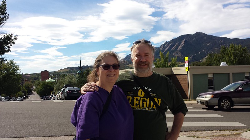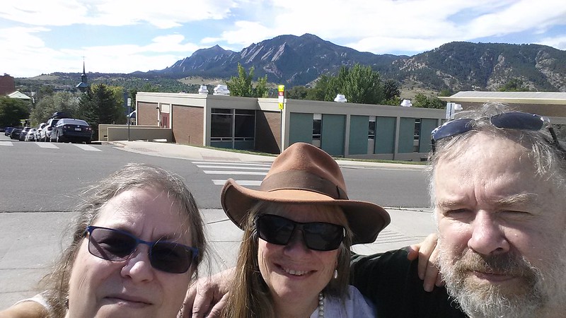 This time we came in late on a weeknight so we took a bus to Boulder and stayed at an AirBNB hosted by an astrophysicist who was the most helpful, accommodating, interesting host I’ve ever had. We took her out for a late dinner, ate breakfast with her, and she and I really connected over early morning coffee. She walked with us halfway to downtown, and explained the way that the sun’s image is projected through the leaves in a tree (or other small spaces) onto the sidewalk, much like a pinhole camera. The round spots are images of the sun.