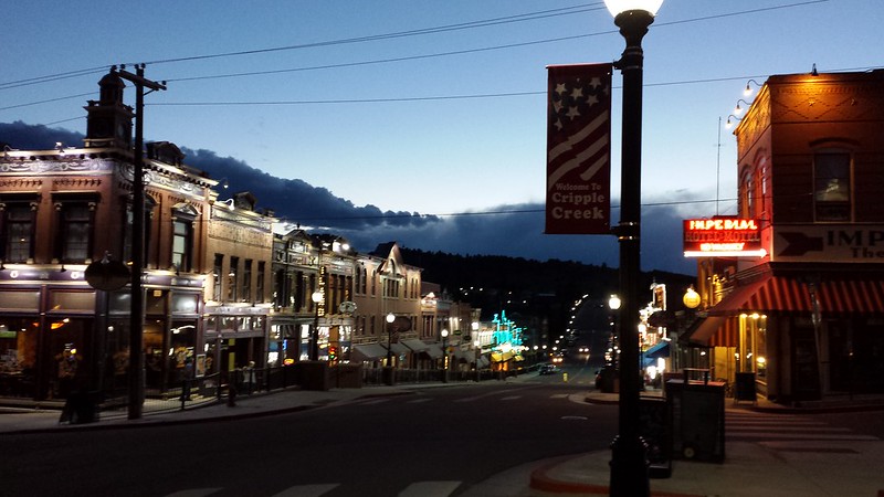 Cherie and I drove and walked around Cripple Creek later that evening, but not much was open other than the casinos, and we don’t gamble. We had a light dinner at an Irish pub that had no stout (!!!) and my food was awful so I won’t mention its name. We did go into the Brass Ass Casino, where they had actual human interaction with roulette and blackjack and craps and that was fun to watch. The other casinos seemed to be only machines, which I find very sad. We saw a skunk run into an abandoned building. We loved the colors and styles of the small turn-of-the-century houses.