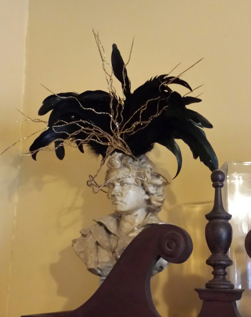 I’m putting together a steampunk outfit for the Steampunk Ball at Haw River Ballroom on New Year’s Eve. The headdress was made be Jenn Guarino. There will be photos, trust me.