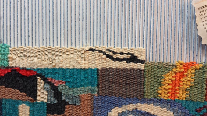 Once the snow stopped, we got about eight inches here in my town, and a foot an hour east in the Triangle area. Which means I was off yesterday and today, and I got some weaving done. Not a whole lot, because I unwove some parts and rewove them with a color combination I liked better. That’s the way it goes sometimes.
