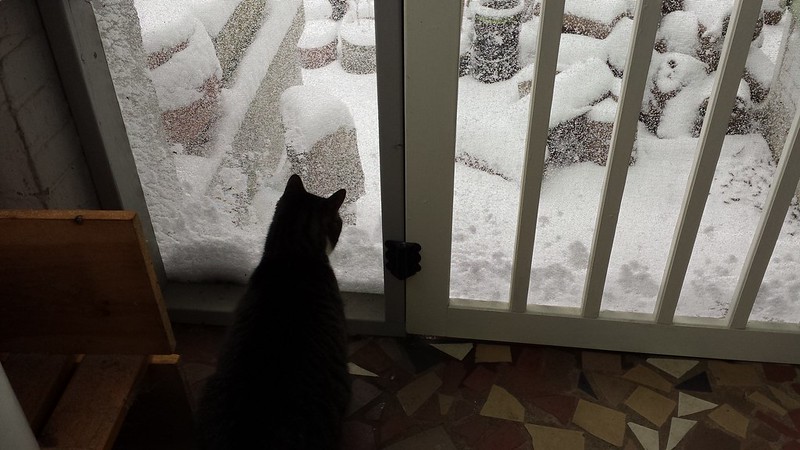 It is so nice to get moving in the morning when I’m ready and not on someone else’s schedule. As state employees, we have to take personal leave days when the university is closed, though. Not really fair since they give us no choice to work, but we can make it up, and we’re doing what we can over email anyway. I’d whine more about it, but I’ve been in full-time jobs where I got no leave at all except a week of vacation once a year, and plenty where I had to go in regardless of the road conditions.