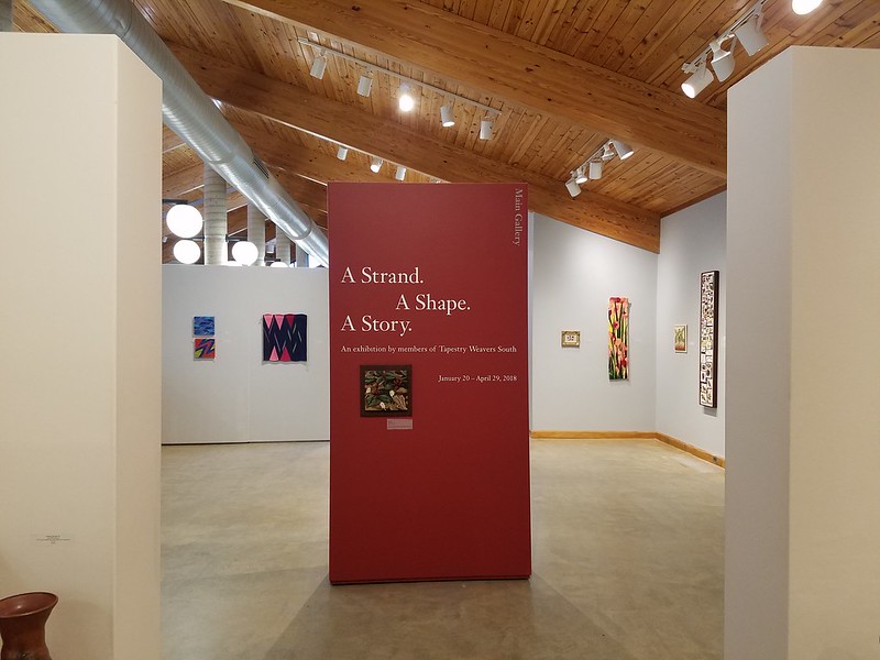 I broke all the rules and took photos at the closing reception of the Tapestry Weavers South exhibit, “A Strand, A Shape, A Story,” that ran in the upper gallery of the North Carolina Folk Art Center from January to April 2018.