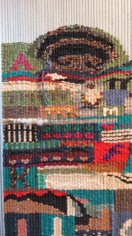 When the weavers began showing their work and talking about tapestry diaries, I admitted that I’d brought mine but had stopped weaving it. It was such an encouraging group that I brought it over and got lots of good feedback on how to get unstuck. The biggest question I needed to answer was (and is, to be honest) if I really wanted to continue or if I should let it go.
