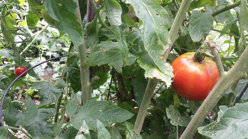 The groundhogs are back now that the tree removal is over. I’m still getting plenty of tomatoes, especially the ones inside the wire cages. Figs are ripening on the tree, but the few that have ripened so far have been nabbed by the birds. Reflective tape and all. I’ve been buying bicolor corn from Rudd Farms every weekend, enough to eat some and freeze some. Tomatoes, onions, peppers, and some eggplants have gone in the dehydrator. The squash overtaking the back forty turned out to be tromboncino. I’ve got to start putting markers in the garden. These photos are from a week ago so the tromboncino is in the tomatoes now. I should pick the flowers and try cooking them. I’ve never done it.