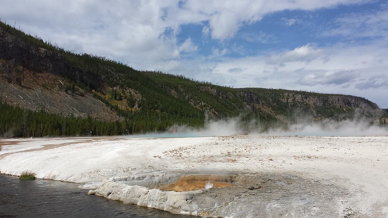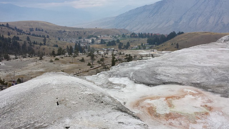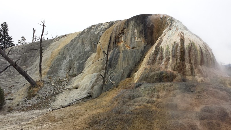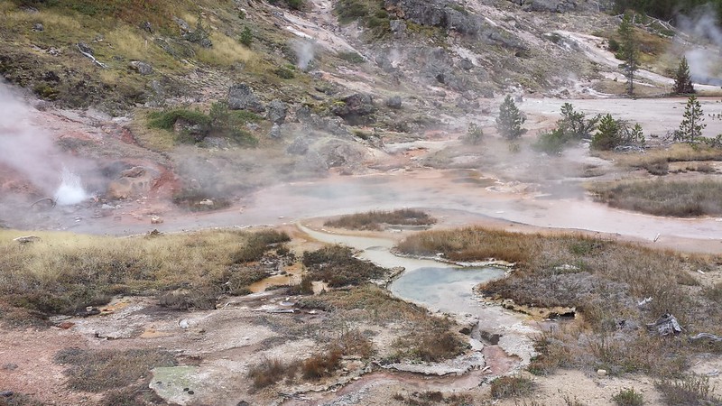 We meandered around the upper terrace and then we went to the Artist Paintpots and then the Fountain Paintpots which was a delight in all senses. We walked the trail up and around to see the mudpots. Bloop, bloop, bloop. Sulfur smells. Crusty textures. Unexpected color.