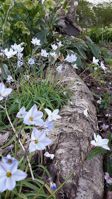I’ve never been able to get a 100% positive ID on this flower, but you see it naturalized in many of the older yards around here, and it is my favorite sign of spring. I think that it is in the scilla family. One “natural” gardening website actually suggested eradicating it and said that she sprayed it with Roundup to no avail. Good for you, little squills. You show ’em who’s boss. (And NEVER EVER use Roundup, and don’t use the word “natural” if you do.) UPDATE: Identification made by Nancy in the comments: Ipheion uniflorum, AKA Spring starflower. Thank you!!!