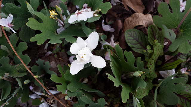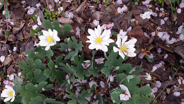 Bloodroots are nearing the end of their blooming season. This is one that started with one clump of roots ages ago that I’ve divided and moved around. It multiplies beautifully and provides flowers at a time when little else blooms. They will grow in shade or sun.