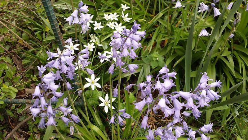 I leave you with this shot from their neighbor’s yard in the front. These bluebells were spared from the tilling and planting of their new grass, mainly because I don’t think that they know this strip is on their side of the line.