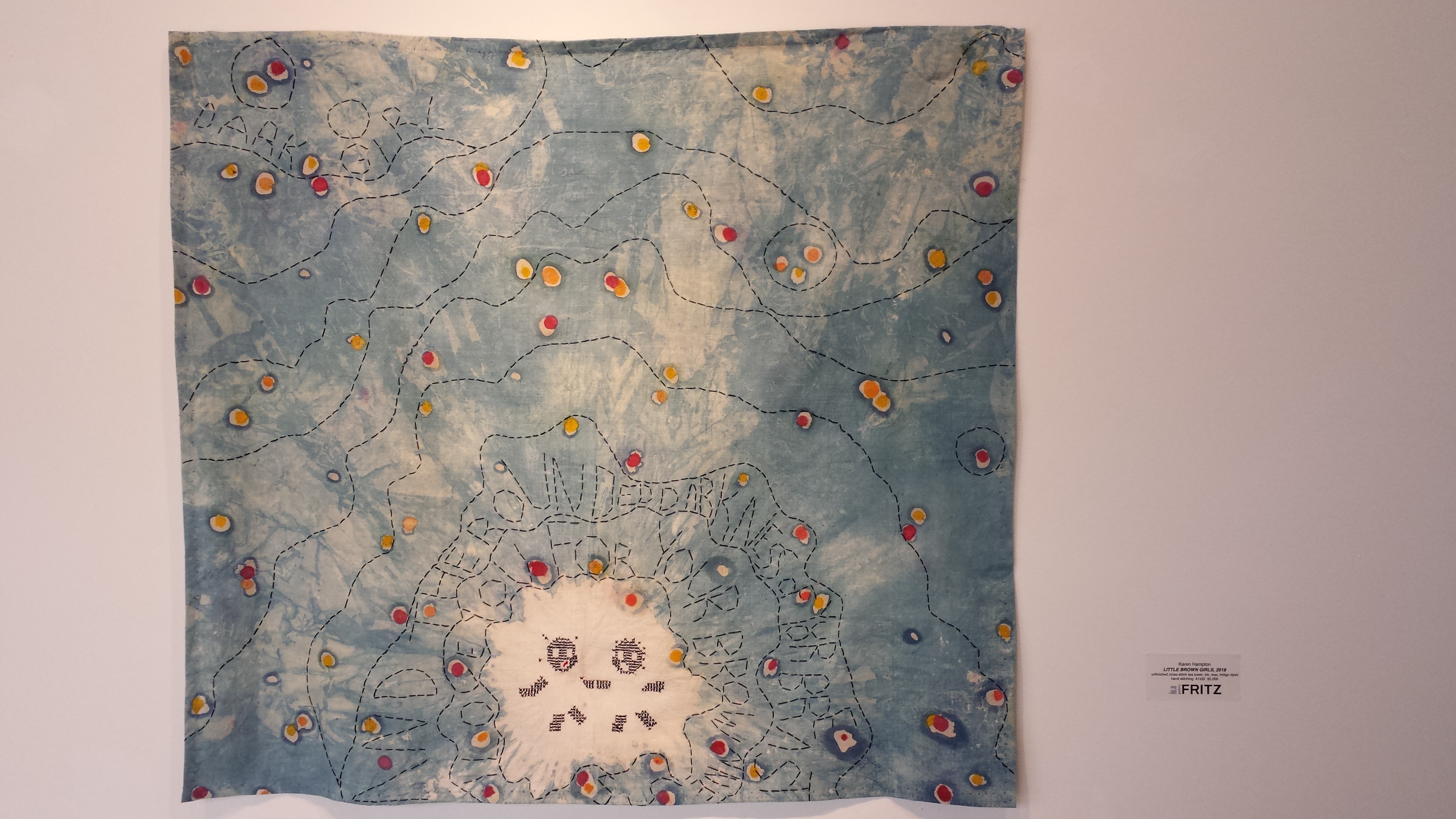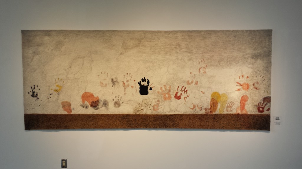 We ate salads and fish tacos at Boxcar in the Santa Fe Railyard District, then walked into the gallery Fritz, which to my surprise was listed on the Northern New Mexico Fiber Art Crawl and was having a terrific fiber art exhibit, “Photographic Evidence in Textiles” featuring the work of Gary Goldberg and Karen Hampton. There were large felted pieces and fabric works that were pieced and stitched and woven.