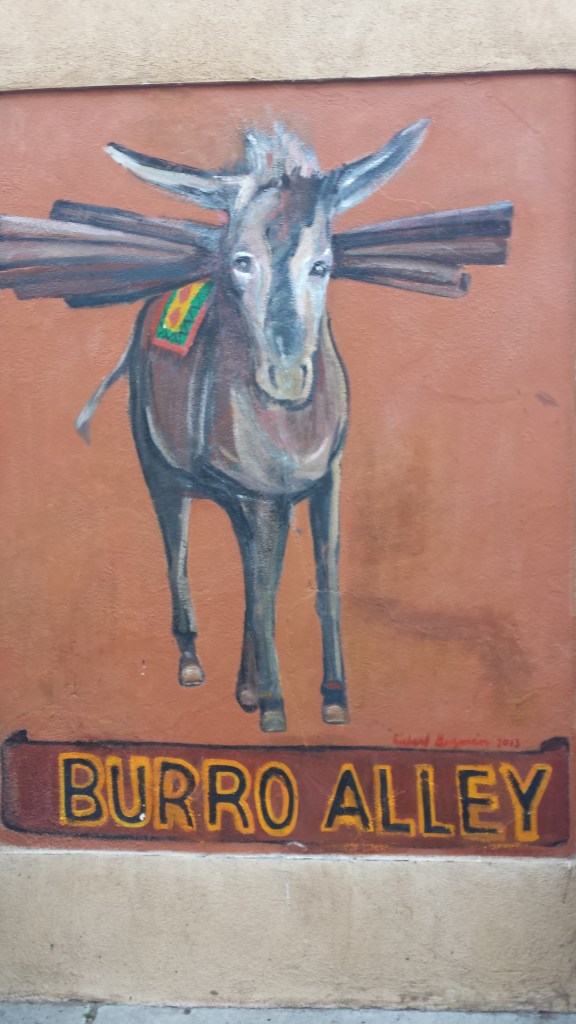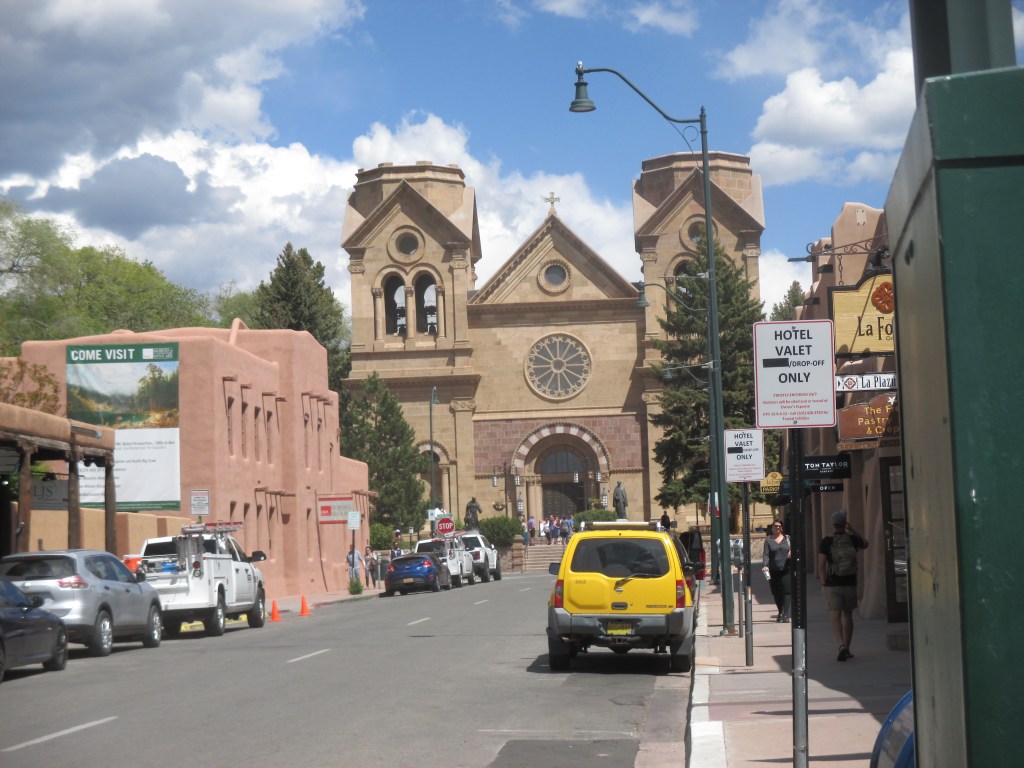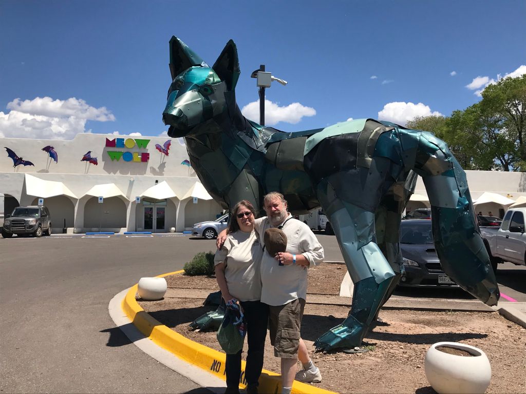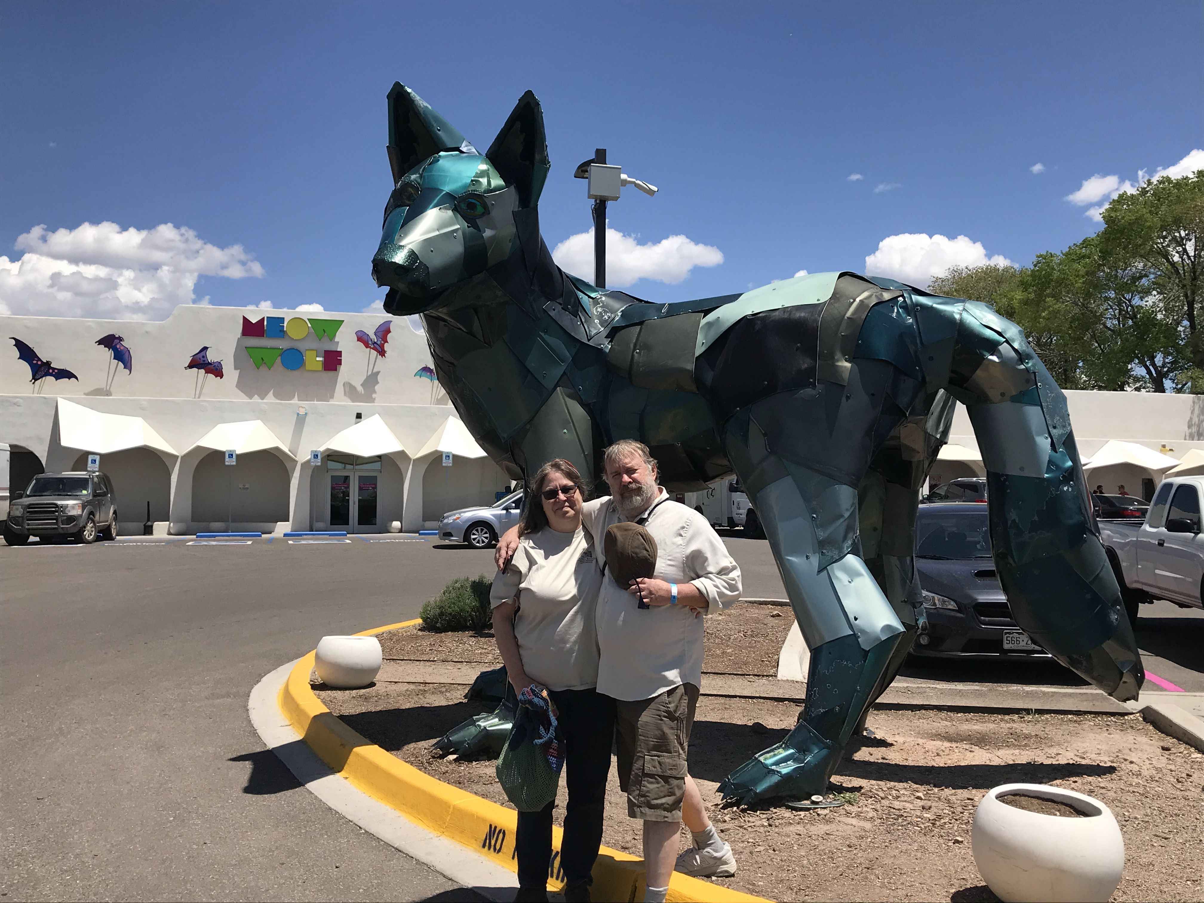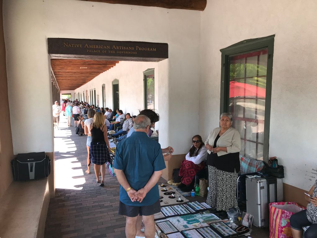 After Meow Wolf, we went shopping at the Palace of the Governors on the Plaza where the Indian artisans sell their work on blankets. I chose some nice earrings and Sandy bought a sand painting on a tile. We wandered in and out of shops. Sandy tried an oxygen infusion at an oxygen bar to see if it would help his altitude adjustment. It didn’t. I bought a book about Navajo weavers at a used book store.