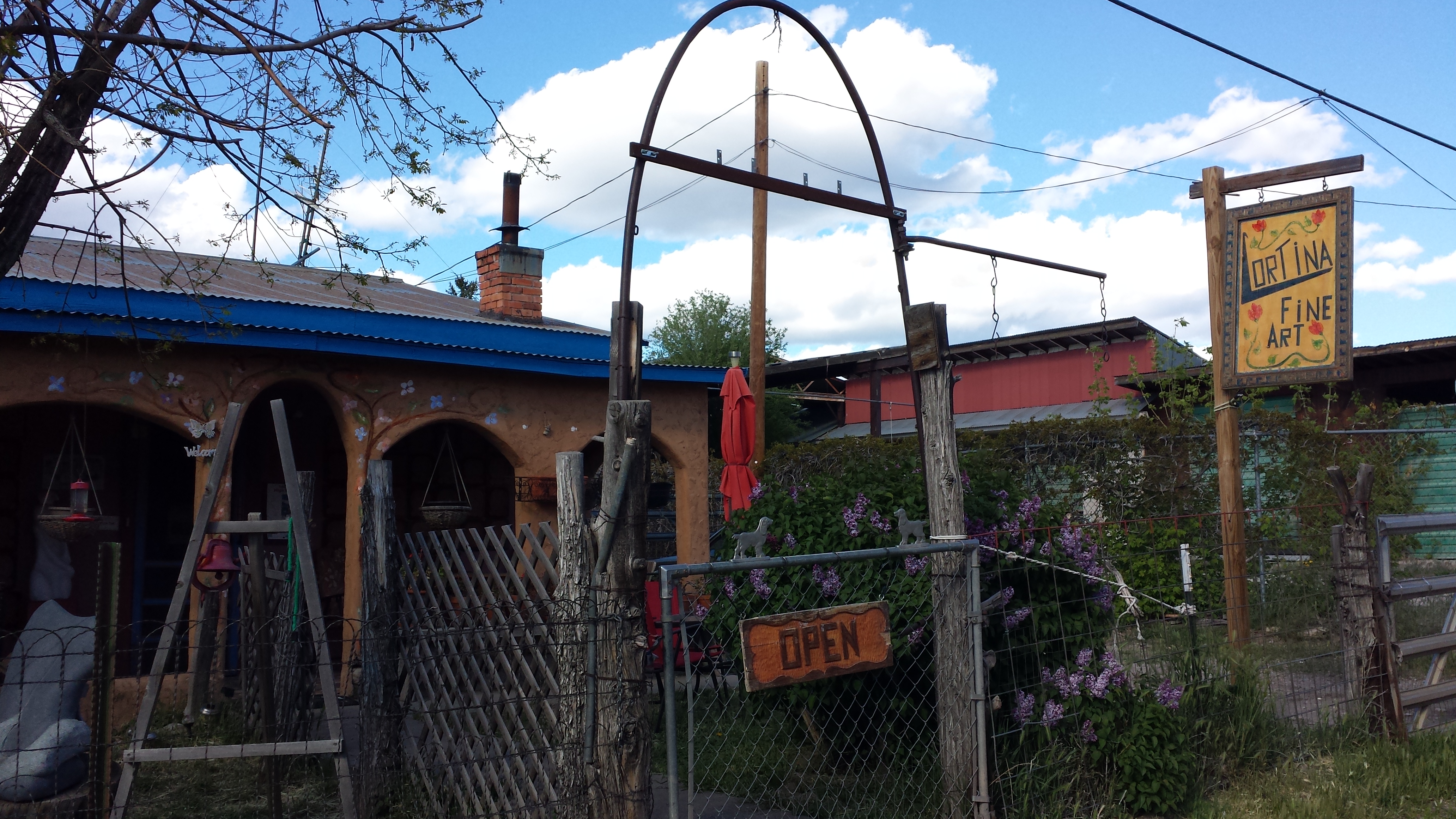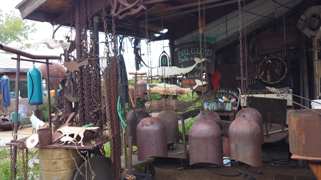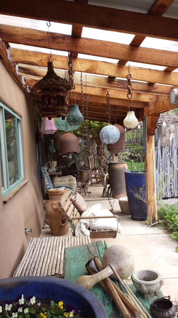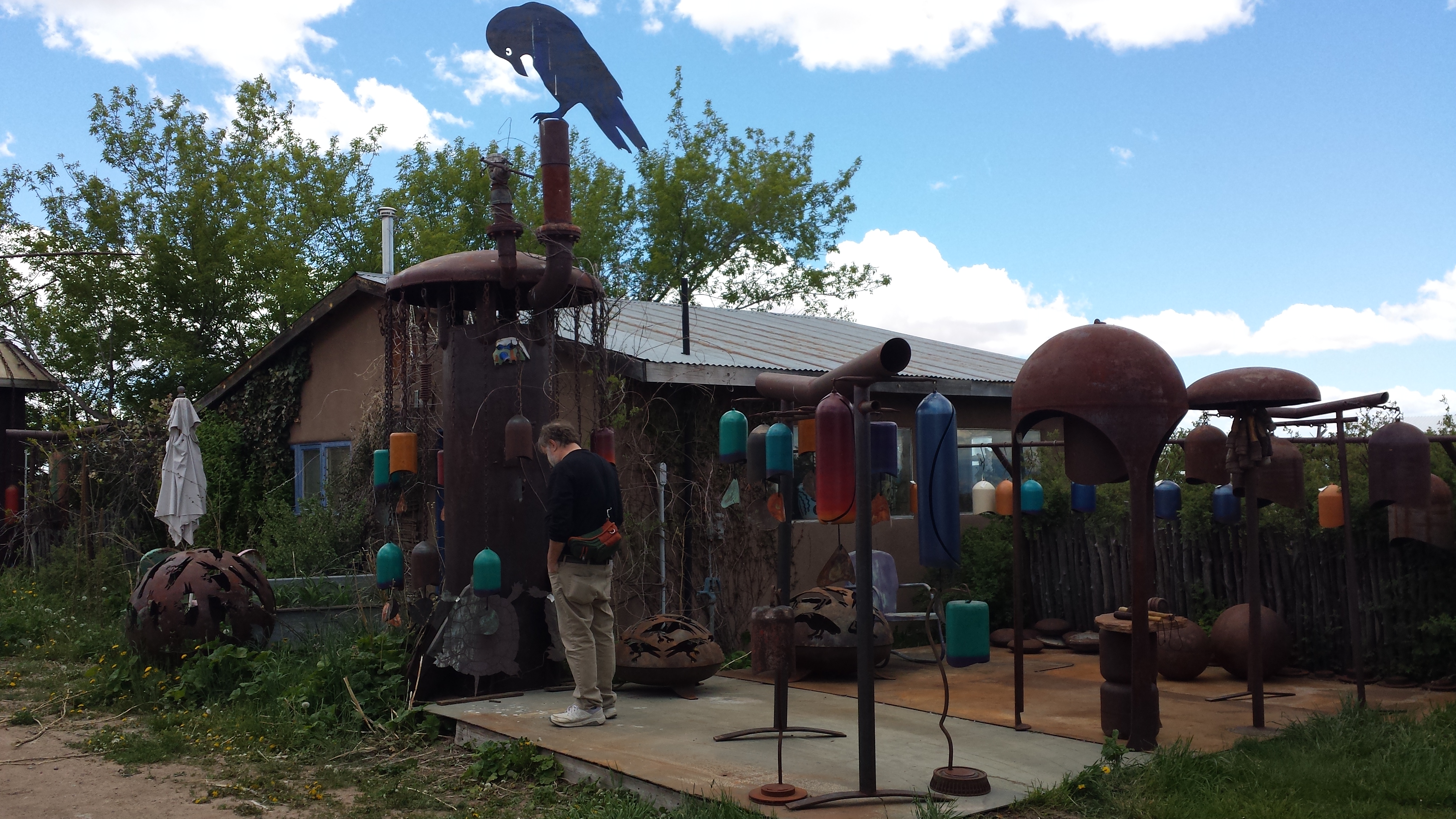 In Truchas, we stopped at Josefina Gordh’s studio and saw her dyed, printed, and painted silks and velvets. We went to Bill Loyd’s amazing studio and gallery where his sculptures graced the property and bells hung everywhere. I really wish that I could afford one of his big bells. They have such lovely low tones.