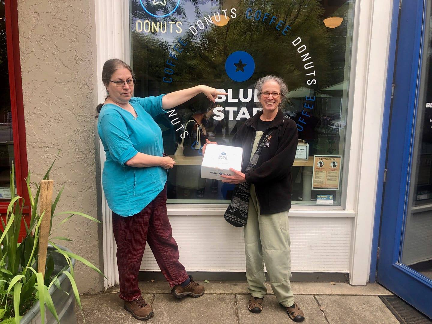 ^^^Susanne, Donut Bitch, in front of Blue Star Donuts.