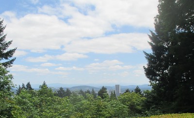 View of downtown Portland and Mount Hood in the distance from the Japanese Gardens