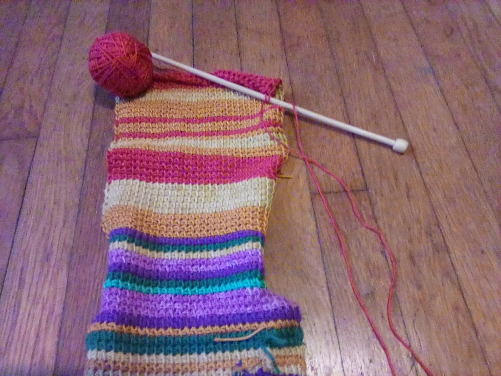 In February, I learned Tunisian crochet and began a weather scarf that used the high temperatures of each day in 2018 to determine the color of each row. It was a lot of fun and I have started a 2019 one. I continued weaving a big twill gamp project on the Macomber loom.