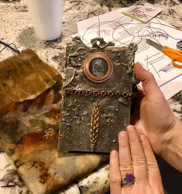 A cancellation in Leslie Marsh’s Nature Bound workshop and a very wise impulse led me back to Topsail Beach for another round with Leslie’s patient and excellent teaching, this time a book with metal covers. I left with one of the most beautiful books I have ever made.