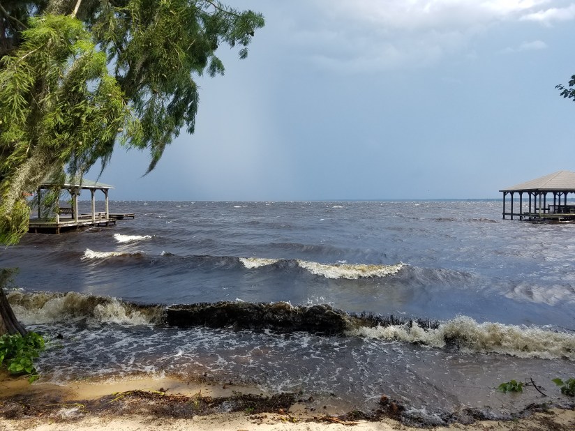 Late yesterday a strong thunderstorm blew in. Thankfully it didn’t have much rain. We’ve had quite enough here. You could see breakers on the lake all the way out, and it cooled down enough that I was able to throw the doors and windows open for a while and sit on the porch.