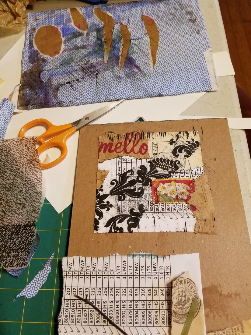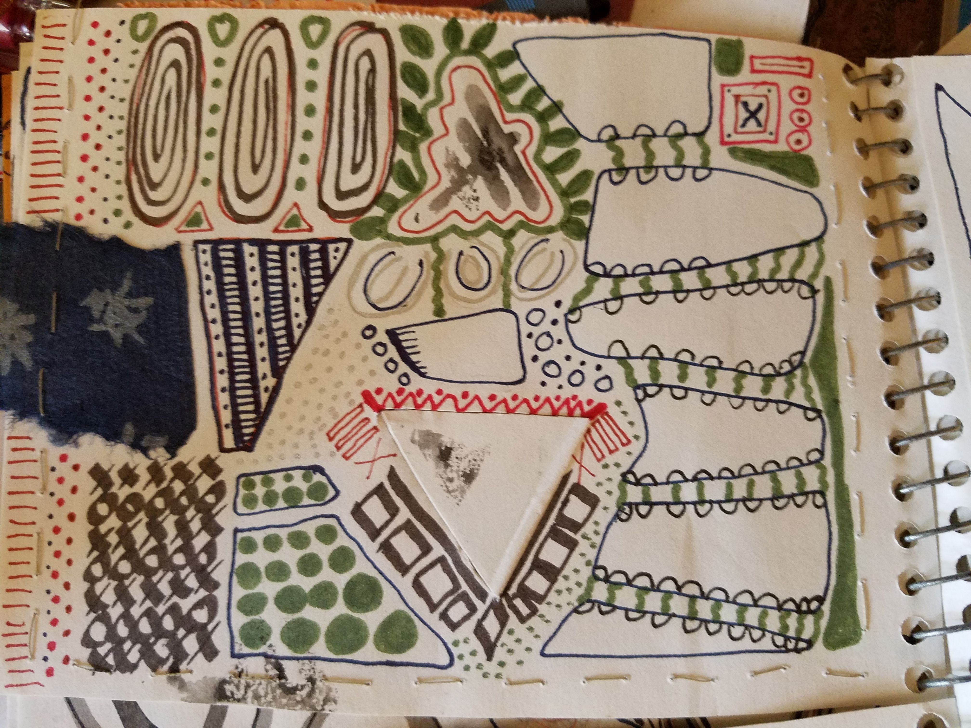 I have managed to get started in the studio again – there’s nothing that I am over excited about happening BUT I have actually started weaving on Cathedral again and glued some stuff down for collage and doodled a pretty good page during a long Zoom meeting.