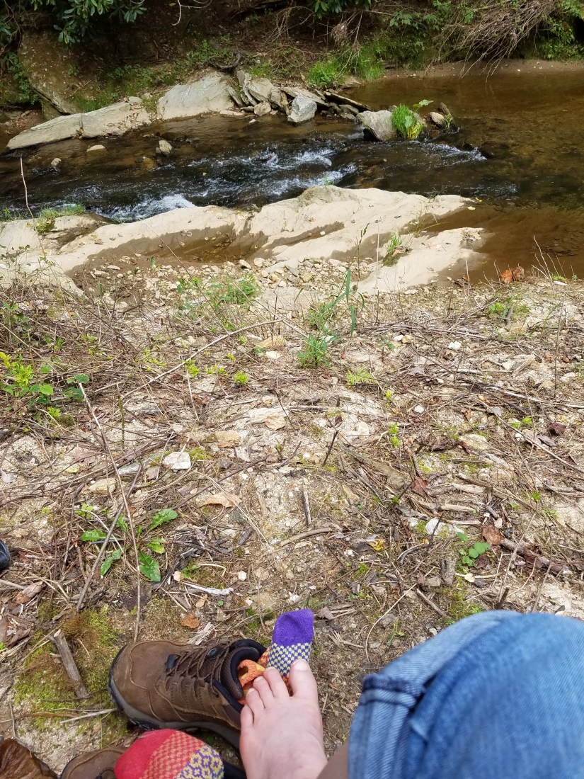 On the way up here, we stopped at Stone Mountain State Park for a couple of hours, and I have to wonder why it is that we haven’t been up here in over twenty years. It is a pretty short drive and a really lovely park. We hiked a little and hung out beside a pretty creek with a little whirlpool at the top of the rapids.