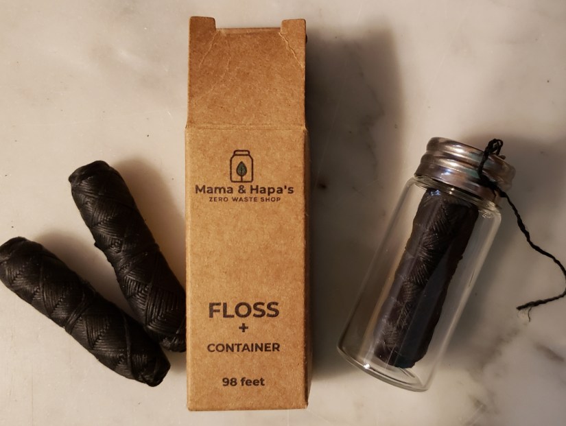 We noshed on the leftover olives and Japanese snacks with ciders in the side garden that afternoon, then wandered back over to Mississippi Ave. to figure out where to eat our last meal in that area, since we’d be leaving for the Crystal Hotel across the river in the morning. During our wandering, we happened on Mama & Hapa’s Zero Waste Shop. I am fascinated with the idea of zero waste, although I’ve given up on the effort to achieve it personally. Our local food coop is working toward the goal of bulk bins with zero waste. Anyway, I could not leave without buying something so I bought this dental floss and two refills.