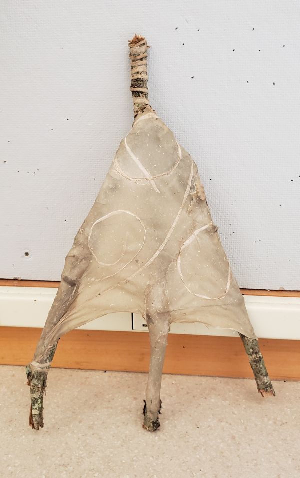 I wrapped sticks with some lace I brought and different papers and kozo strips, then I dyed some of them.