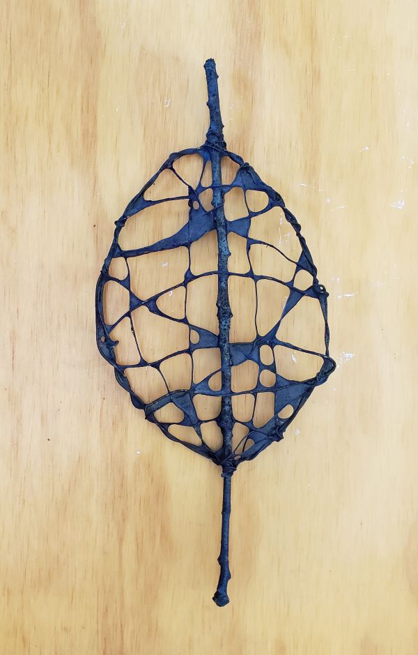 I didn’t come away with many sheets, but here’s a shot of a kozo sheet I made and dipped in indigo and poured black walnut dye over it to get that almost black color.