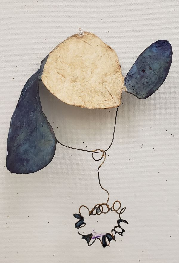 I intended for this wire to become a big birdie but it had other ideas. The spiral bit came out of the trash can. This paper was almost dry when I covered the shapes but it still had some shrinkage in it.