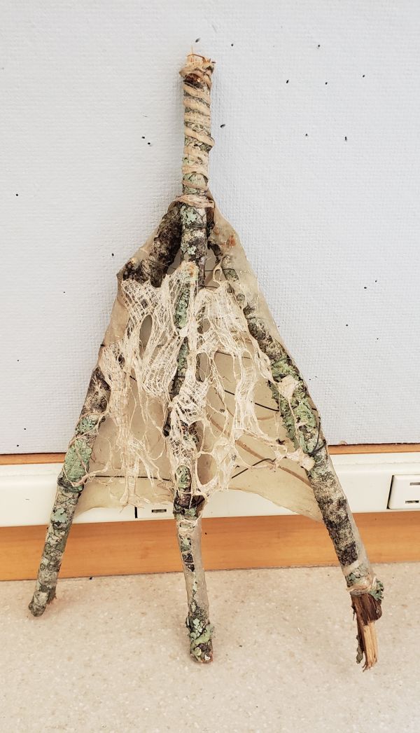 I wrapped sticks with some lace I brought and different papers and kozo strips, then I dyed some of them.